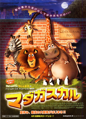 ニューヨークの動物園のスター、ライオンのアレックスとシマウマのマーティにカバのグロリア、病弱キリンのメルマンはいっつも仲良し。
